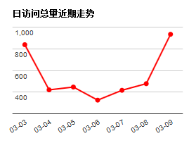生成圖表以后,可實(shí)時(shí)任意調整時(shí)間范圍。默認生成的趨勢圖不僅會(huì )顯示每一個(gè)單位節點(diǎn)(小圓圈),也會(huì )顯示每一個(gè)單位節點(diǎn)的訪(fǎng)問(wèn)量數據(如下圖)。如果不需要這些圖標,可點(diǎn)擊頁(yè)面中的相應復選框,將選項取消即可。